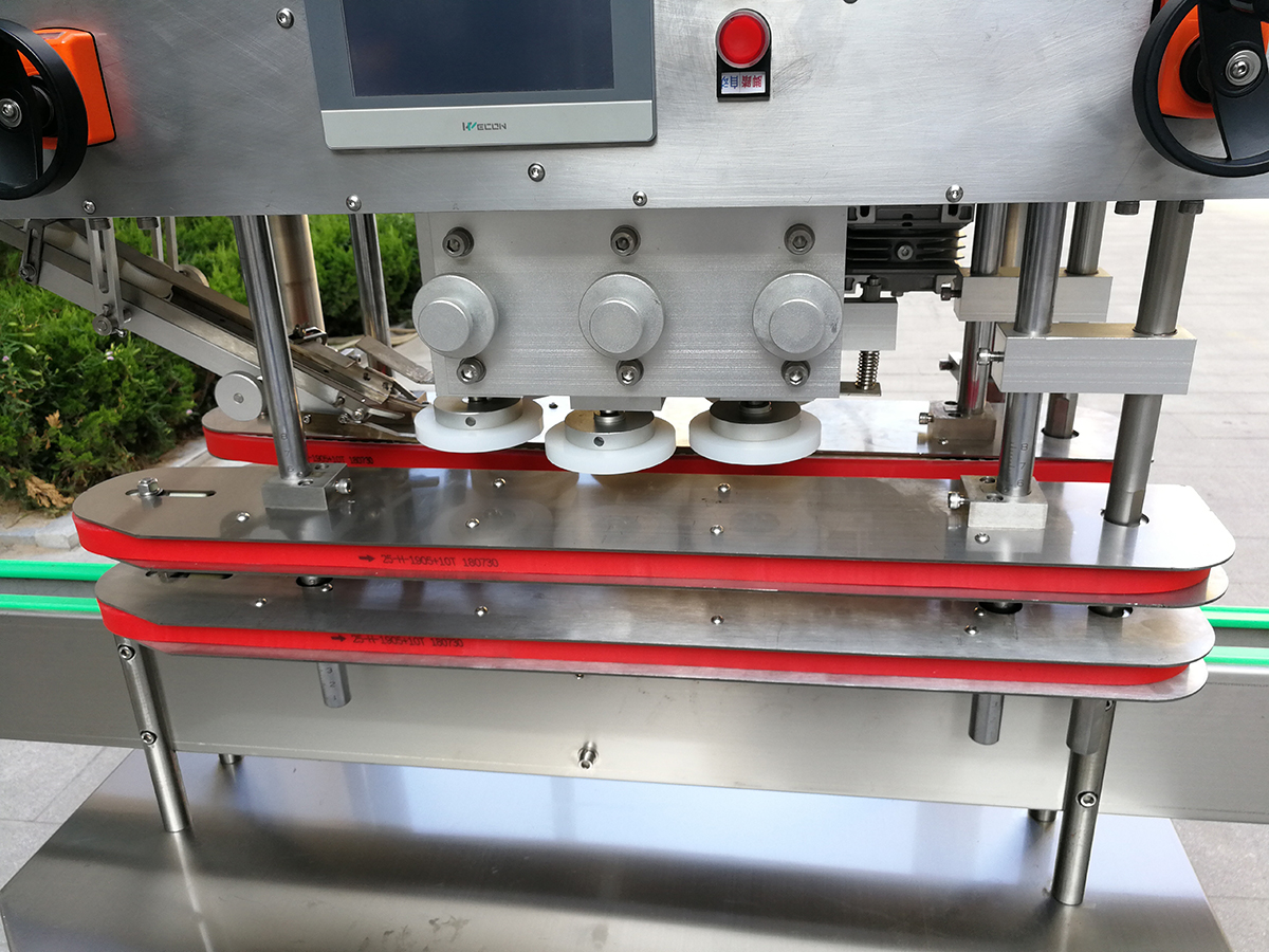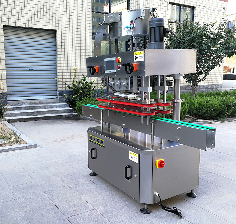XH-160B型全自動(dòng)直列式壓蓋機(jī)是我公司很新改進(jìn)的一種新型壓蓋機(jī)。四臺(tái)調(diào)速電機(jī)分別用于供蓋、夾瓶、傳送、壓蓋,機(jī)器自動(dòng)化程度高,穩(wěn)定性好,調(diào)節(jié)方便、更換瓶型或蓋時(shí)無(wú)需備件,只需作調(diào)整即可完成(如配上蓋機(jī),可進(jìn)行自動(dòng)上蓋)。外觀美觀大方、靈巧、壓蓋速度快,合格率高,可適用于食品、醫(yī)用、化工、飲料等行業(yè)的不同瓶形的旋蓋。