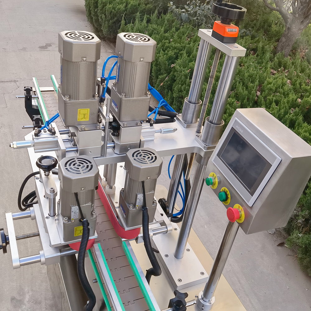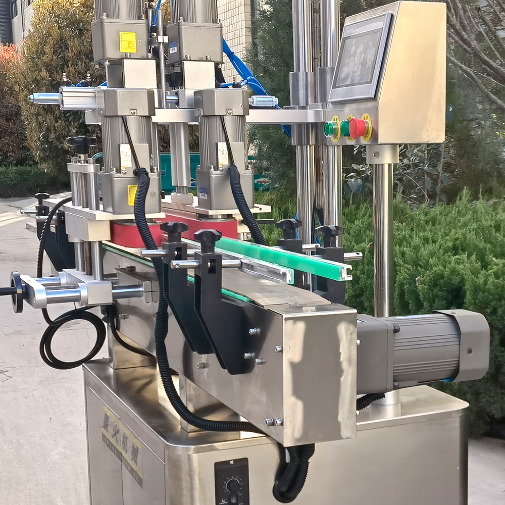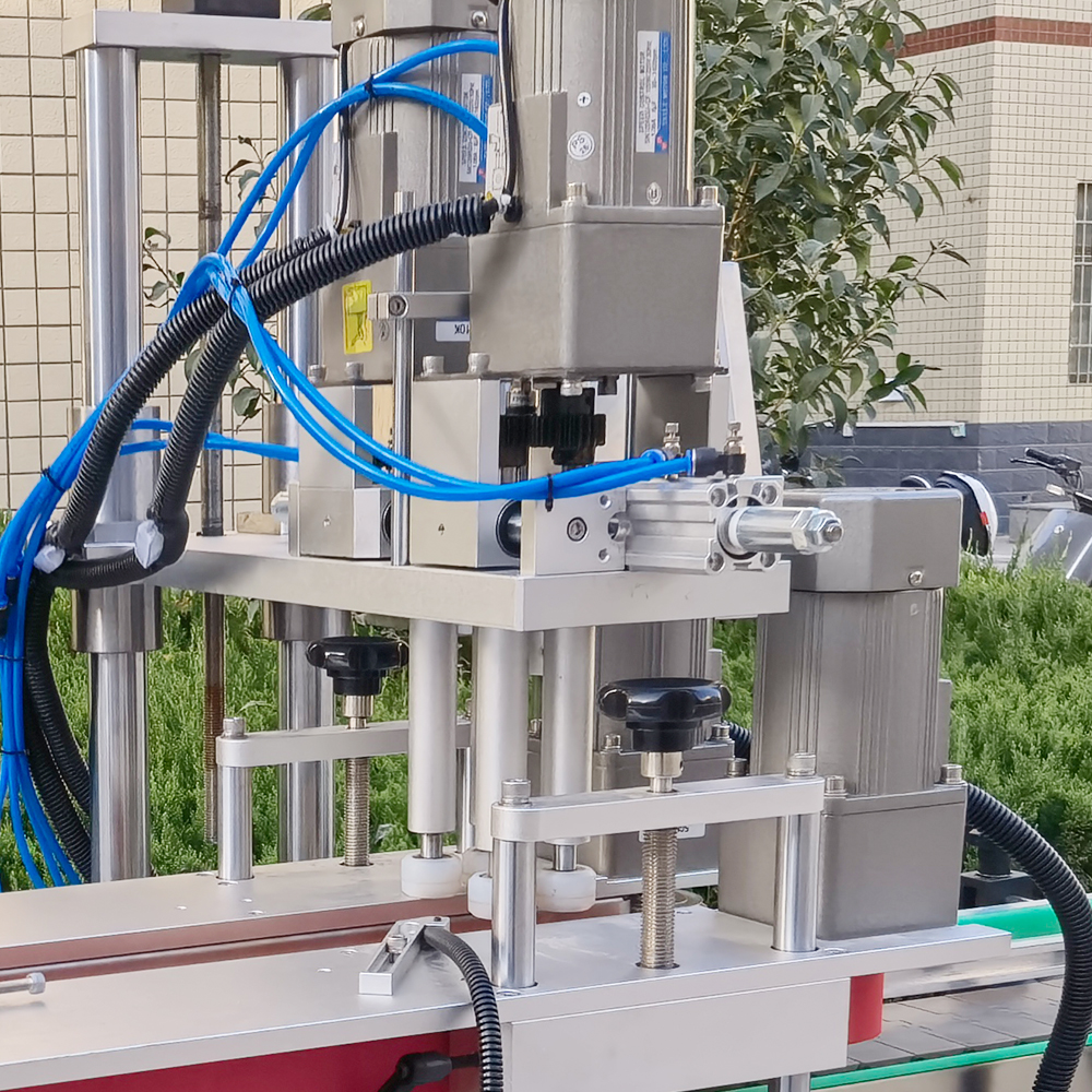 全自動夾蓋旋蓋機主要用于各種不同瓶型的理蓋、上蓋、旋蓋、輸送等生產工序,它能夠針對于各種不同形狀的容器旋蓋,如:圓形瓶、方形瓶、棱形瓶、橢圓形、異形瓶等瓶蓋。全自動夾蓋旋蓋機采用光電監測裝置,能夠精準、快速、有序的整理雜亂無章的瓶蓋,并將其向排列好送至夾帶處。
